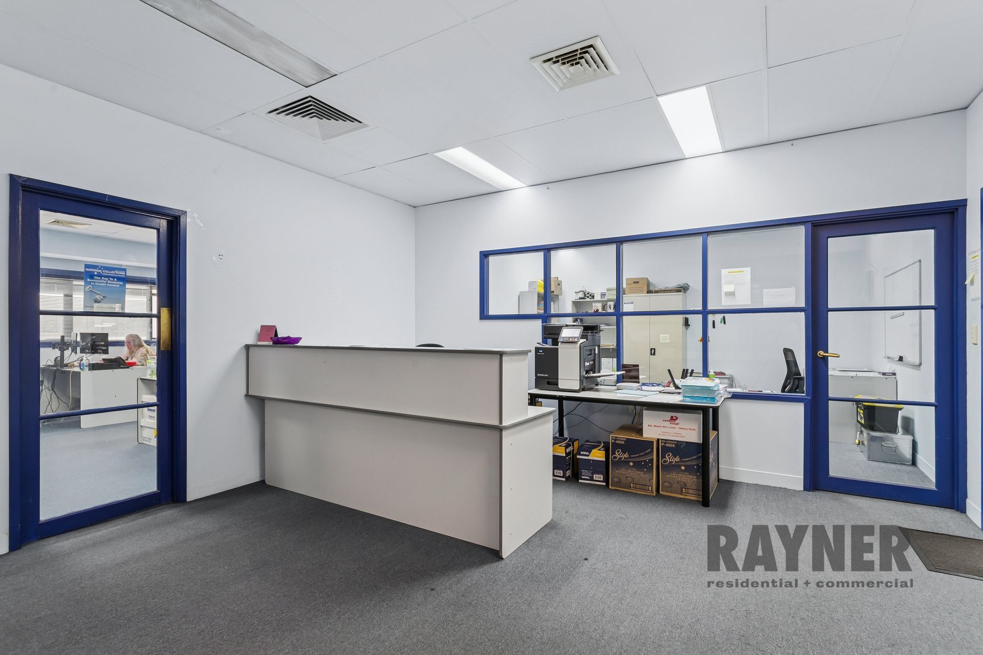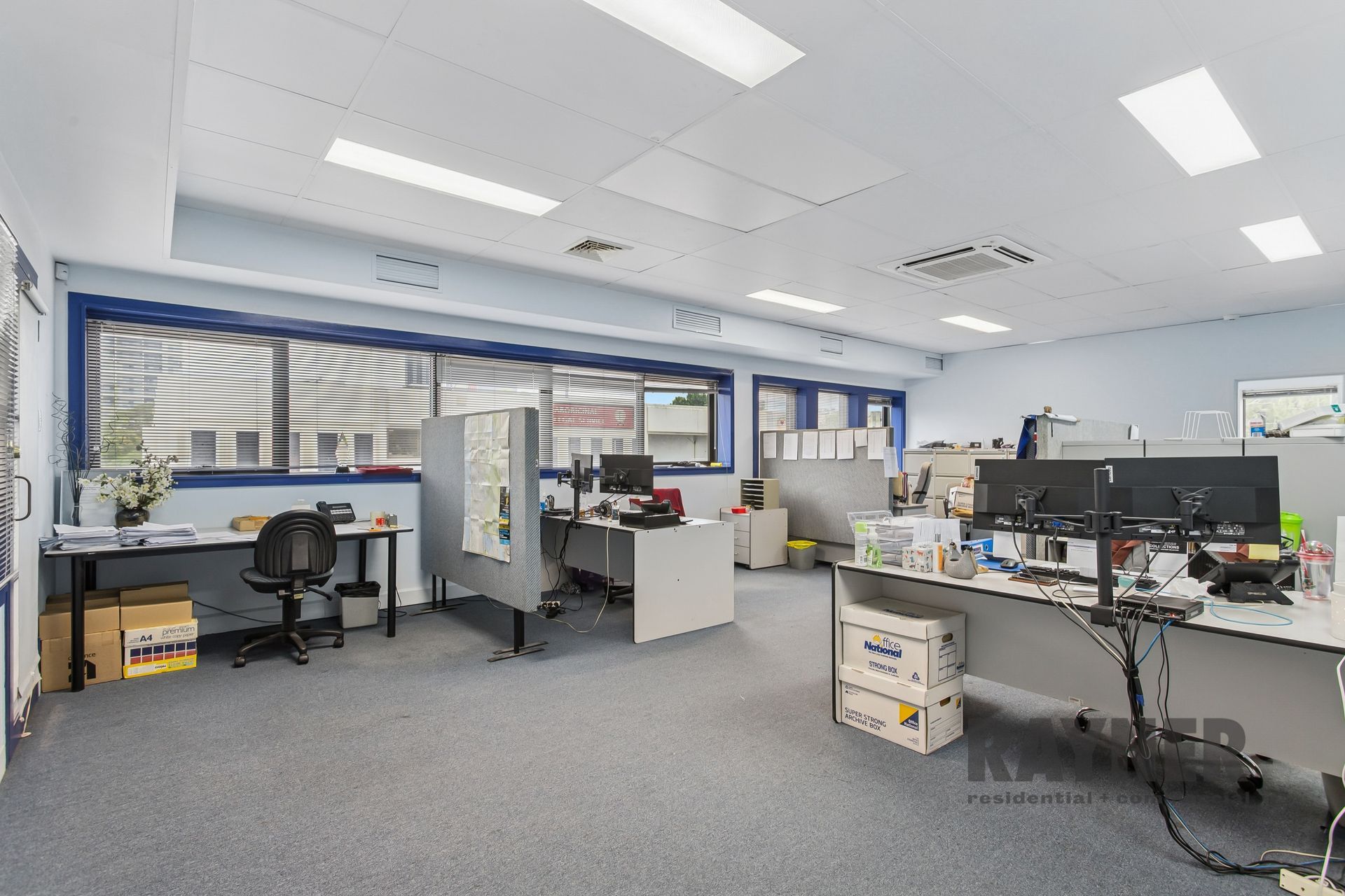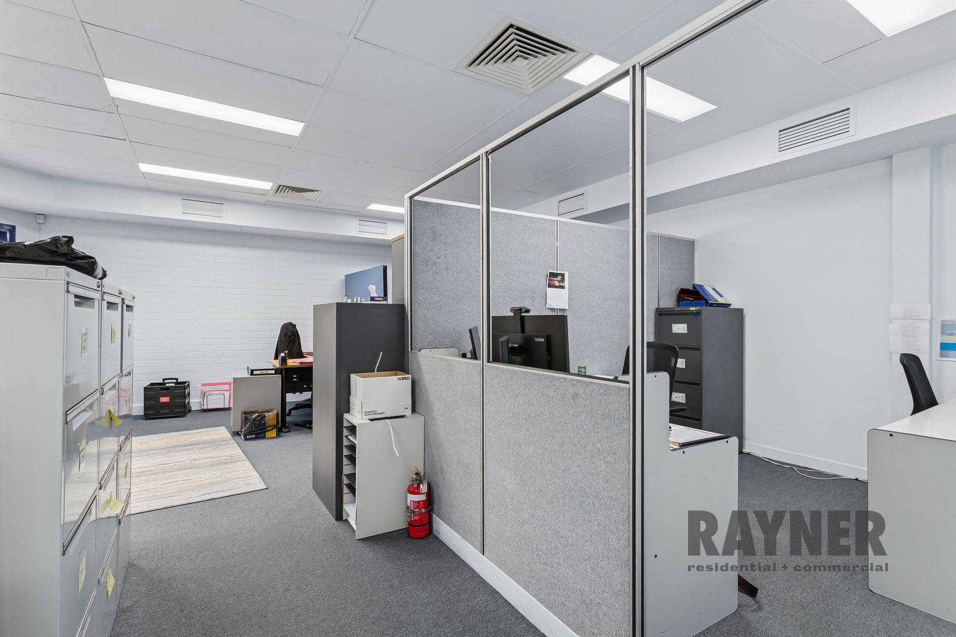The property comprises a generous 201 sqm office area and benefits from two separate entrances, allowing for flexible occupation or the ability to split the space for multiple users. Access is via a single stairwell from the ground-floor lobby.