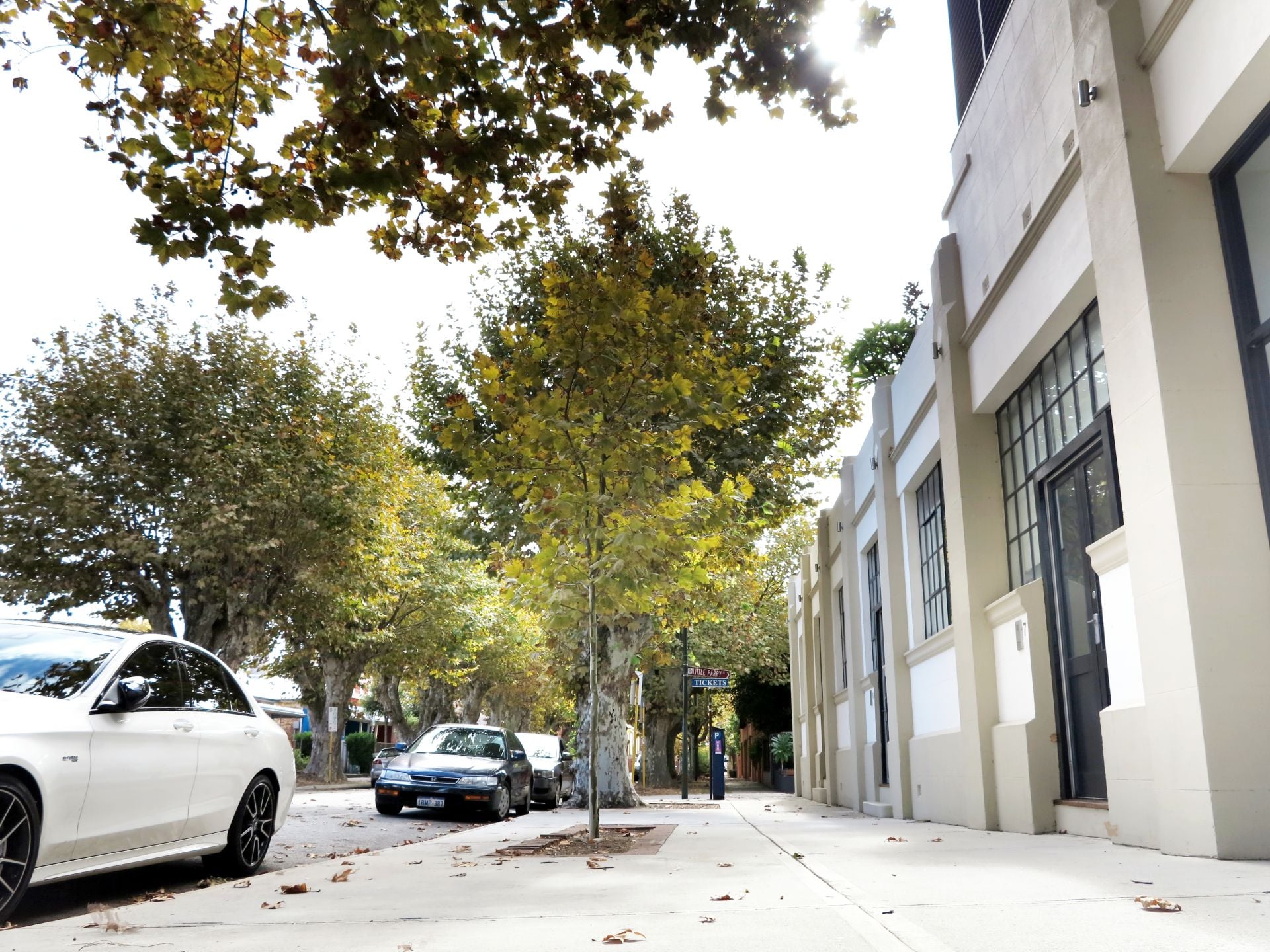 The leafy streetscape provides a vibrant green canopy in summer and transforms into a warm golden hue in autumn, creating a stunning natural backdrop for city living.